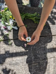 - Travniški šopek: Za sproščen, “boho” videz uporabite ivanjščice, materino dušico, deteljo ali klasje trav.